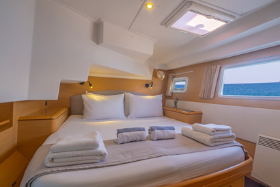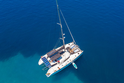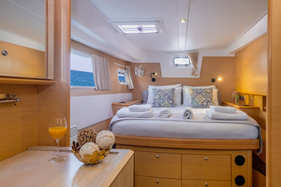 Proven to be one of the most popular live-aboard sailing catamarans in the world, the Lagoon's innovative fly bridge design, 4 spacious en-suite cabins, living spaces and sunbathing areas make life onboard a breeze — the ultimate fully catered sailing holiday or intimate wedding or honeymoon escape with everything tailored entirely to you! Our catamaran comes with a skipper to navigate your custom itinerary, and a chef/host to create magic in the kitchen, keep the drinks flowing, clean and ensure your time onboard runs smoothly.