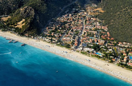 Kidrak Beach is situated just 2 kms south-east of Oludeniz and it is easily reached by road. With ever changing turquoise waters, a fine pebbled strand shaded by stately pine trees, backed by high scenic cliffs, this is an ideal place to escape the crowds. You can enjoy a lazy picnic, snorkel around the rocky headland or watch the sunset. Sunbeds and umbrellas are provided and the beach has all the basic facilities including a snack bar. There is a small entrance fee.