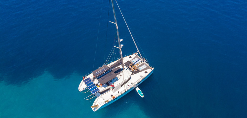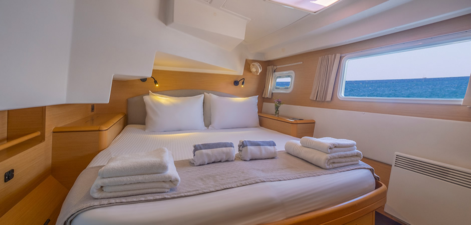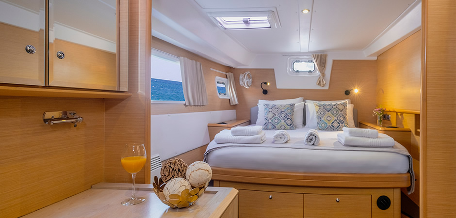 Proven to be one of the most popular live-aboard sailing catamarans in the world, the Lagoon's innovative fly bridge design, 4 spacious en-suite cabins, living spaces and sunbathing areas make life onboard a breeze — the ultimate fully catered sailing holiday or intimate wedding or honeymoon escape with everything tailored entirely to you! Our catamaran comes with a skipper to navigate your custom itinerary, and a chef/host to create magic in the kitchen, keep the drinks flowing, clean and ensure your time onboard runs smoothly.